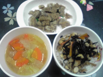 晩ご飯・・・軟飯一杯、おかず一杯