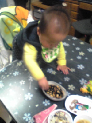 軟飯をベビー食器に一杯と、おかずを2種類合わせて、多い時でベビー食器一杯ぐらい食べます。